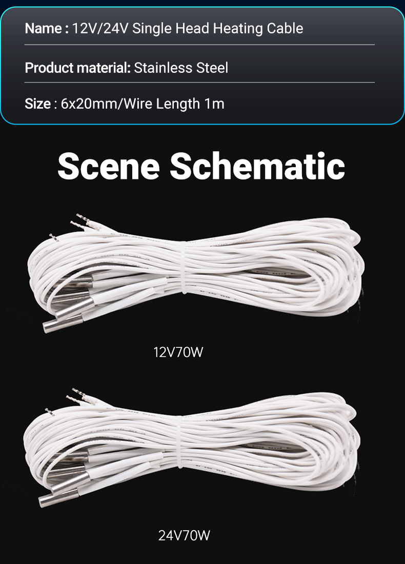 Heating Tube 6x20mm 12V/24V 70W Heater Cartridge High Temperature Ceramic Cartridge Heater Cable 1m For V6 Hotend
