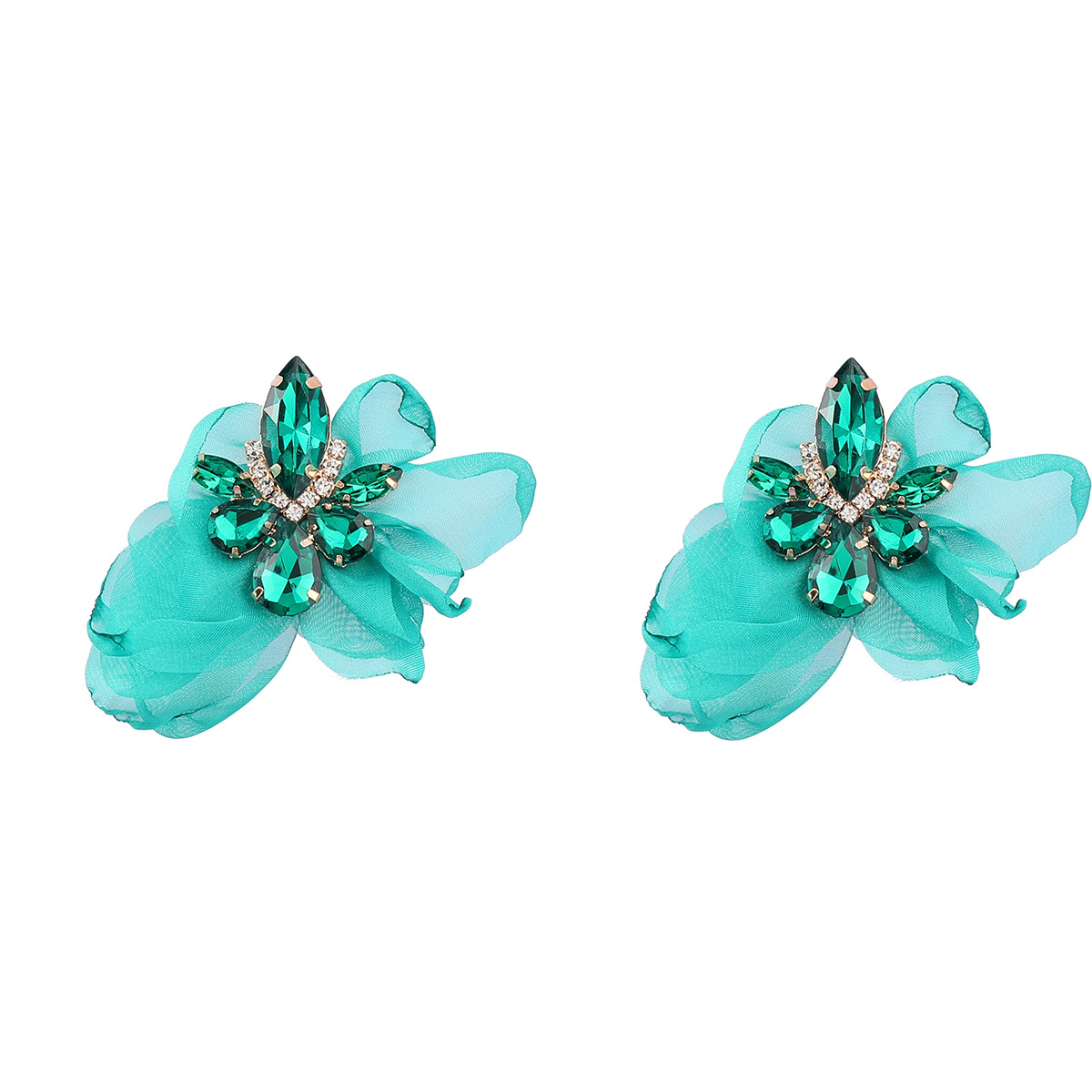Ins Style Alloy Diamond-embedded Fabric Flower Earrings For Women